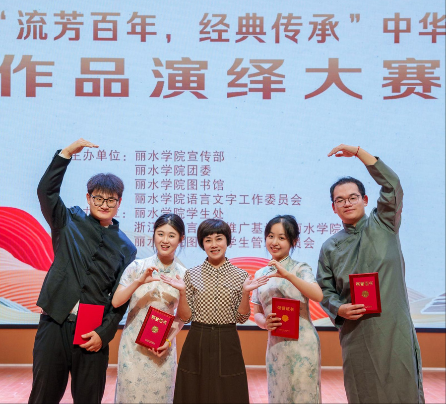 本次大赛主办单位充分发动、精心组织,校语言文字推广基地专家团队反复指导排练,整台节目呈现了很高的水准,得到与会领导、嘉宾、校内外评委和同学们的一致好评!大赛的成功举办,不仅为丽院学子提供了展示自我的平台,更推动了中华经典文化在校园的传承与弘扬,营造起了“书香润校园,阅读促成长”的良好氛围。