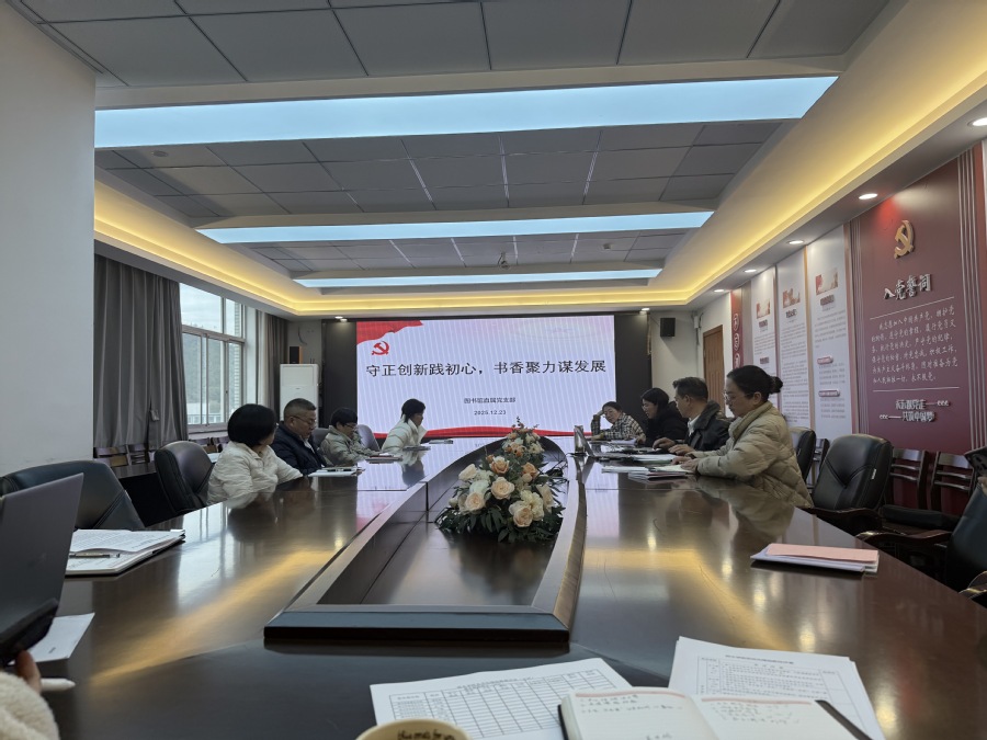 为深入学习贯彻党的二十届四中全会精神,充分发挥党支部战斗堡垒作用和党员先锋模范作用,12月23日,在图书馆十楼会议室开展以“守正创新践初心,书香聚力谋发展”为主题12月份的主题党日活动。