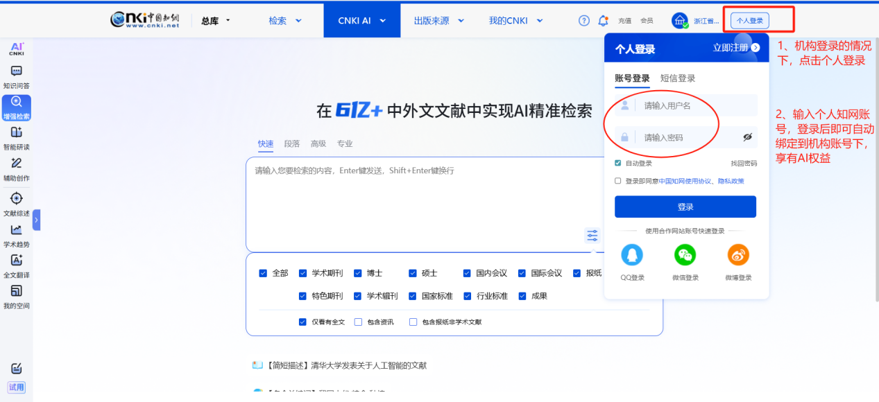 2、个人账号登录后,自动绑定到机构账号,即可享受机构AI权益