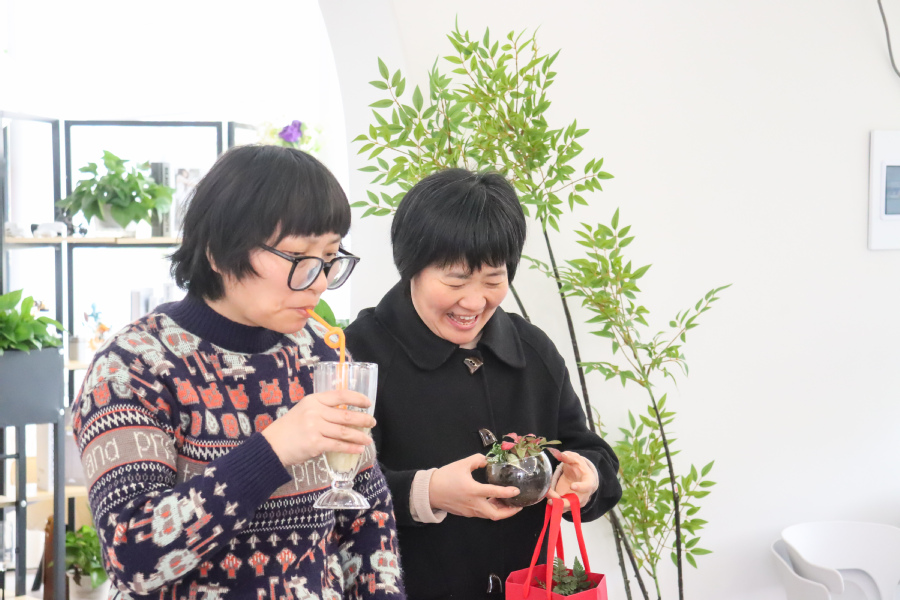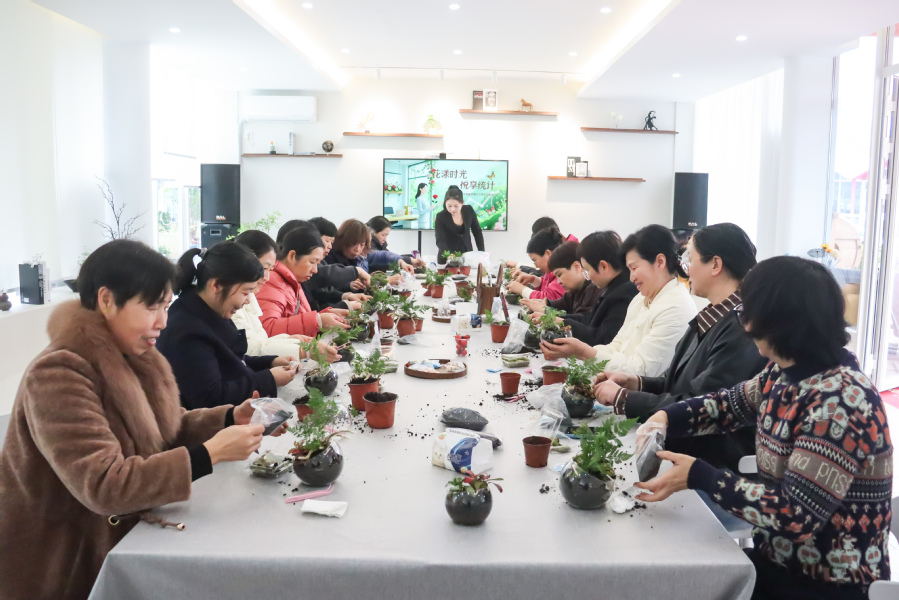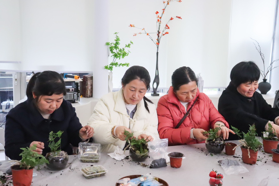 活动现场温馨雅致,园艺老师讲解微景观制作技巧与绿植养护知识。大家化身 “园艺设计师”,搭配绿植、苔藓、砂石与小摆件,在方寸间打造生机盎然的指尖小景,创意与巧思尽显。简餐分享与休闲交流环节,大家围坐畅谈,在轻松氛围中增进情谊、舒缓压力。现场设置美照打卡点,定格巾帼笑颜,留存美好瞬间。